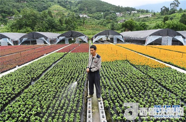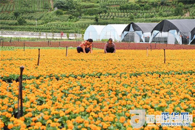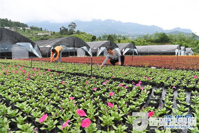6月12日,艷山紅村村民在村里的花卉基地勞作。近年來,重慶市武隆區羊角鎮艷山紅村探索“公司+村集體+農戶+基地”的經營模式,發展花卉種植等產業,實現了“農村資源變資產、資金變股金、農民變股東”,幫助當地農民通過保底分紅、效益分紅、務工收益等方式脫貧增收。新華社記者王全超攝