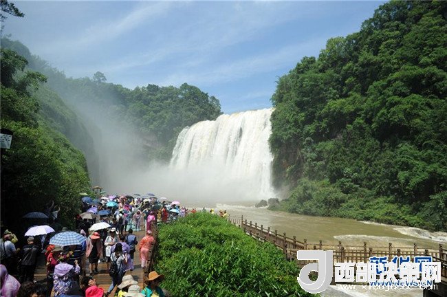 游客在安順市黃果樹瀑布景區游覽(6月5日攝)。