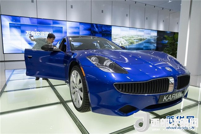 2018年7月4日,一名參觀者在觀看萬(wàn)向集團(tuán)旗下公司研發(fā)的、在北美地區(qū)上市的KARMA混動(dòng)跑車。新華社記者沈伯韓攝