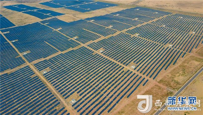 這是位于庫布其沙漠中的億利集團生態能源光伏電站(7月11日無人機拍攝)。 新華社記者 彭源 攝