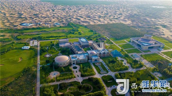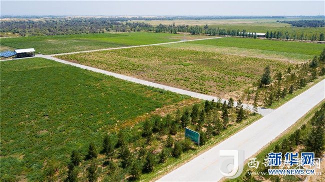 這是位于庫布其沙漠中的億利集團阿木古龍甘草健康產業園(7月11日無人機拍攝)。 新華社記者 彭源 攝