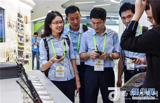 參加“國家發展戰略與香港青年機遇”參訪團的香港青年代表在深圳海能達通信股份有限公司總部展廳參觀(2018年6月26日攝)。新華社記者毛思倩攝