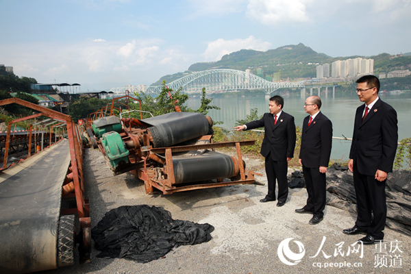 10月17日,重慶市人民檢察院第二分院檢察官復勘非法碼頭整治現場。劉政寧 攝