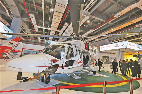 AW189型直升機是此次進博會上單體價值最高的一個產品,價值2億元人民幣。本報記者 周燦 攝