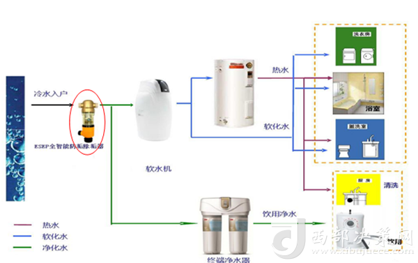 通常安裝在進水管道水表后,是對全屋用水的第一道過濾、防垢設(shè)備。可以阻止水體中成垢離子的結(jié)合,并且過濾自來水中的泥沙、鐵銹、大顆粒物質(zhì)。