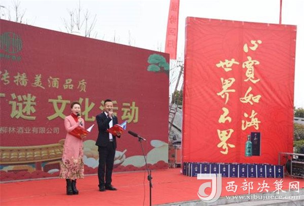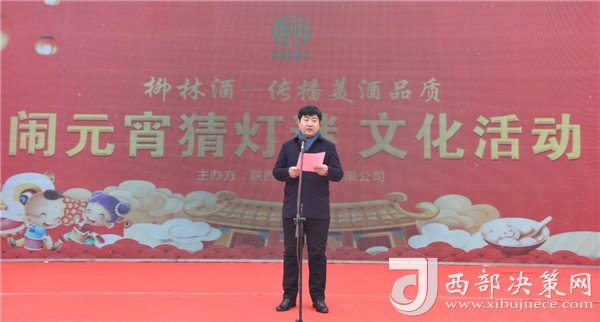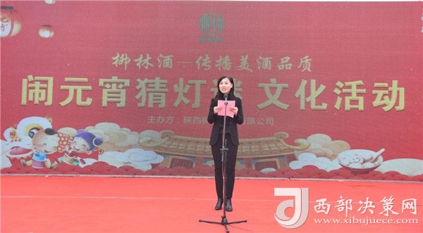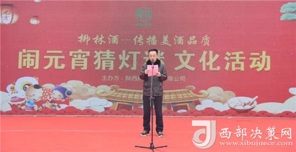 陜西柳林酒業有限公司副總經理周峰發表講話并向鳳翔父老送上新春祝福和節日的問候。“三陽開國泰,美哉柳林酒。今天是正月十五,首先我代表柳林酒業董事長付小銅先生、總經理柳林先生及全體員工給現場的父老鄉親、朋友們拜個晚年,祝各位家庭好、事業好、身體好心情好、運氣好、福氣好、財氣好、愛情好、朋友好、新的一年一切都好!柳林酒業主辦的以傳播柳林美酒品質為主題的“鬧元宵有獎猜燈謎文化活動”,在此,對前來的各位父老鄉親,各界朋友表示衷心的感謝。本次猜謎活動獎品總價值15萬元,共設1000條謎語,只要猜中謎底,關注“柳林酒業”,即可獲得獎品。現場更有國家級評酒大師親臨現場,品柳林美酒,共同傳播美酒文化和歌舞表演環節,相信大家一定會不虛此行,度過一個難忘的元宵佳節。