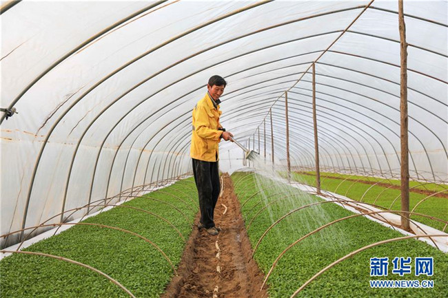 3月11日,在明光市管店鎮甜葉菊育苗扶貧基地,農戶在甜葉菊育苗大棚內忙碌。新華社記者 曹力 攝