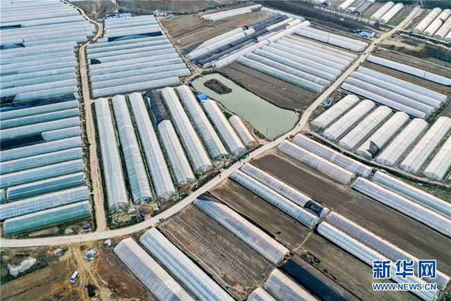 3月11日無人機拍攝的明光市管店鎮甜葉菊育苗扶貧基地一角。 新華社記者 曹力 攝