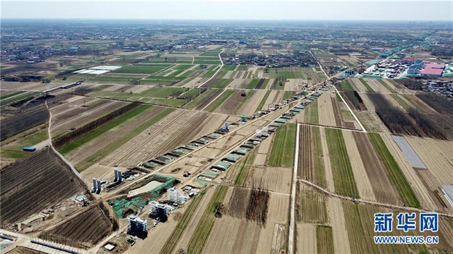 這是京雄城際鐵路施工現場(3月20日無人機拍攝)。新華社記者 楊世堯 攝