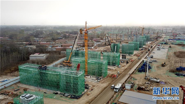 位于雄縣縣城東北10公里處的昝崗鎮,是京雄城際鐵路的施工現場,遠遠就能望見起重機的起重臂直指云天,大型機械機器轟鳴,工人們更是鉚足了勁,一些建筑已經拔地而起……