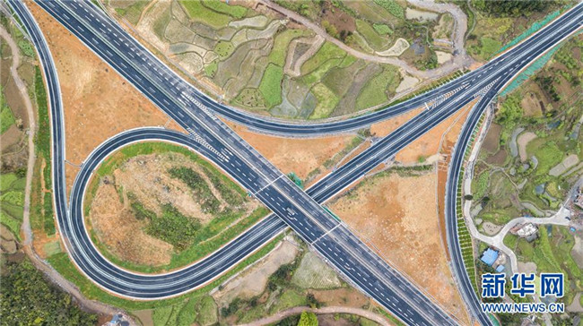 4月3日無人機拍攝的三荔高速周覃互通。 新華社記者 陶亮 攝