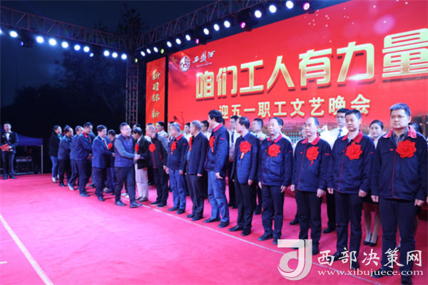 4月28日晚,以“咱們工人有力量”為主題的西鳳集團迎五一職工文藝晚會在公司文體活動中心隆重舉行。西鳳集團公司領導張正、賈智勇、楊會軍、盧軍賢、師紅勤、周艷花、高洪濤、王科岐、張周虎、陳軍紅,公司歷屆市級以上勞動模范代表及干部職工和家屬近2000多人共同觀看了晚會演出。