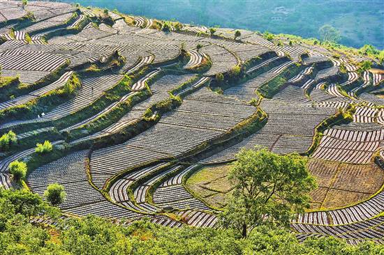 近日,南澗彝族自治縣南澗鎮白云村的烤煙大田移栽基本完成,一片片梯田構成了一幅美麗的畫卷。南澗縣今年將進一步加大科技種植、科技管理力度,力爭實現烤煙生產提質增效。本報通訊員 適志宏 攝