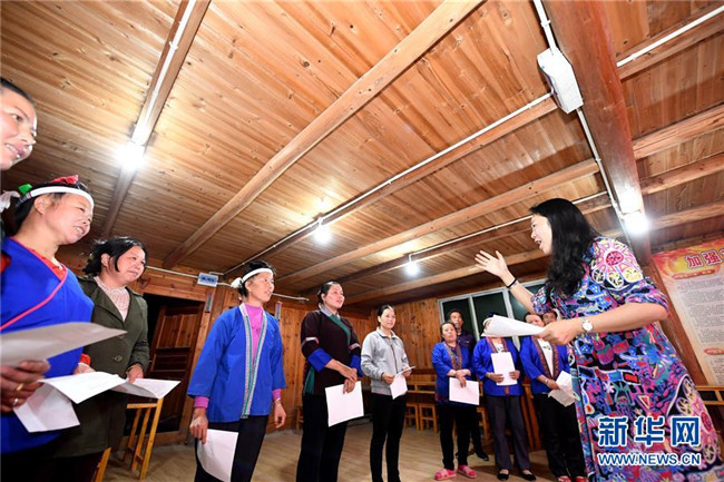 今年42歲的吳純娟是廣西柳州三江侗族自治縣文化館的一名文藝輔導員。她從小喜歡唱歌,工作后接觸并喜歡上侗族大歌,2005年起還為此專門拜師學藝。今年3月中旬,她來到三江縣良口鄉燕茶村,成為了一名駐村工作隊隊員,她說,侗族大歌是她工作的一件“法寶”。 燕茶村位于侗鄉大山深處的山腰上,熱愛歌舞是村民們的天性。鐘情于侗族大歌的吳純娟也將這項充滿魅力的原生態藝術帶進了村。她在村里開設了培訓班,還專門成立了“侗族大歌文藝隊”,利用晚上及其他業余時間免費教村民唱侗族大歌,村部會議室、村里的戲臺、還有山上的千畝茶園……幾乎燕茶村的每個角落都留下了他們的歌聲。吳純娟還將侗族大歌帶進了課堂,引發了師生們學唱侗族大歌的熱情。 吳純娟說:“侗族大歌歌唱的都是自然、勞動和愛情之美,我希望在傳承民族文化的同時,也能更加激勵貧困山區的群眾鼓足干勁,朝著美好生活奮進!” 新華社發(黎寒池 攝)