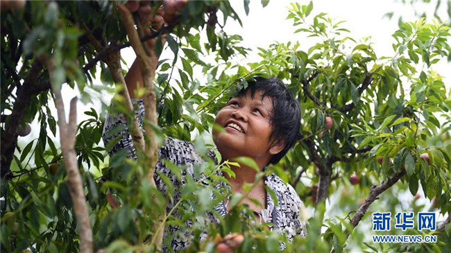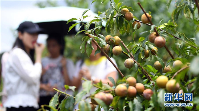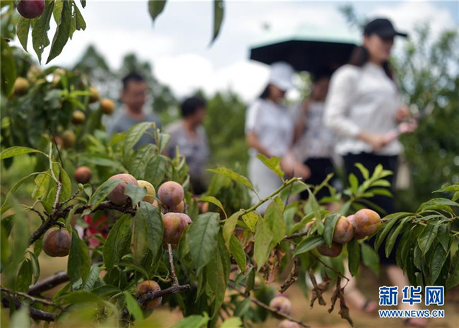 近日,廣西欽州市欽南區那麗鎮殿艮村種植的三華李進入收獲季,吸引游客前來采摘。目前,殿艮村種植的“扶貧李園”共帶動16戶貧困戶實現增收。 新華社記者 張愛林 攝