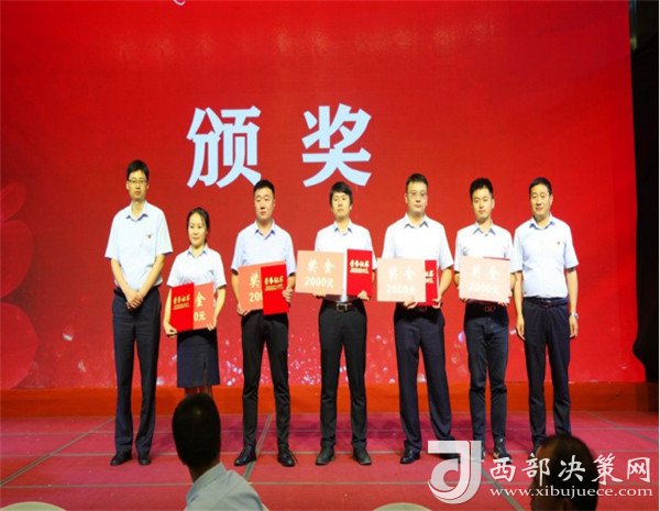 西鳳股份公司副董事長、總經理賈智勇,西鳳集團公司黨委副書記、紀委書記劉周虎為受表彰的先進個人頒獎