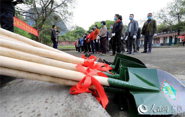 廣西柳州市融安縣沙子鄉紅妙村拍攝的勞務隊成立。譚凱興攝