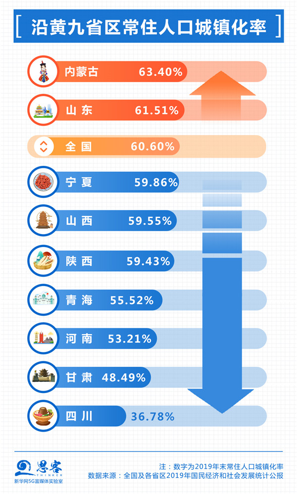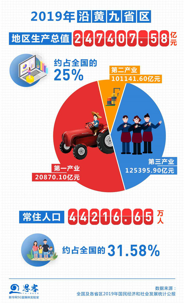 “平衡南北方,協同東中西”,黃河流域在我國經濟社會發展中地位十分重要。流經青海、四川、甘肅、寧夏、內蒙古、陜西、山西、河南、山東9個省區的黃河,流域內省份2019年底總人口4.42億,占全國的31.58%;地區生產總值24.74萬億元,約占全國25%。