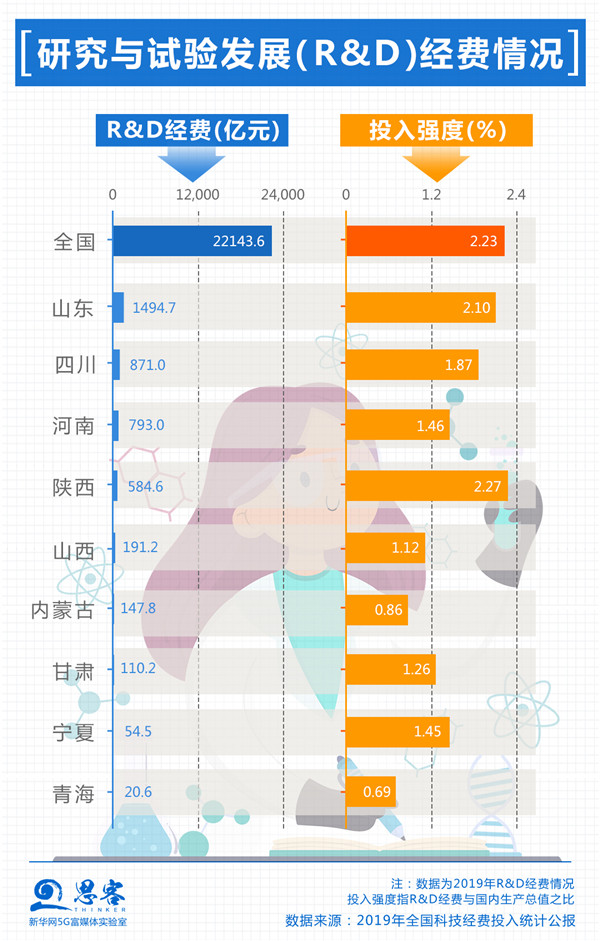同東部沿海地區、南方省份相比,黃河流域創新競爭壓力巨大,創新要素“孔雀東南飛”的趨勢嚴峻。2019年,九省區內只有陜西的R&D經費投入強度高于全國平均水平。高端人才、技術勞動力、產業資本等關鍵要素外流態勢仍在持續,因此黃河流域在新舊動能轉換上面臨困境。