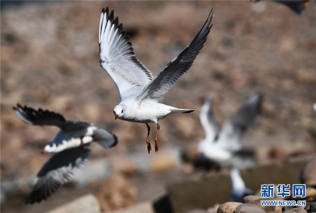 這是11月11日在重慶市江津區幾江長江大橋一帶拍攝的紅嘴鷗。新華社記者 王全超 攝