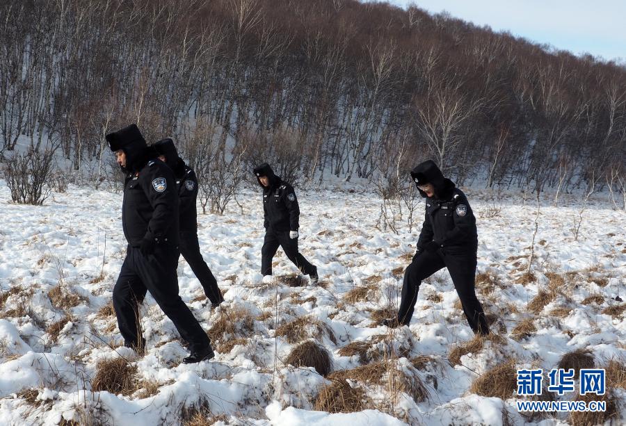 11月27日,克什克騰旗森林公安民警在黃崗梁國家森林公園內,解除盜獵分子下的鋼絲套,消除野生動物安全隱患。新華社發(王志國 攝)