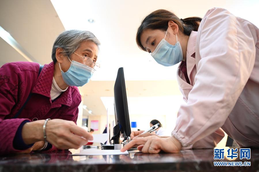 福建省三明市第一醫(yī)院的醫(yī)保辦工作人員(右)向前來咨詢藥品報銷問題的居民講解相關政策(11月18日攝)。新華社記者 姜克紅 攝