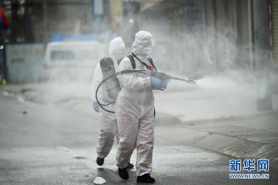1月15日,在河北省石家莊市藁城區禪房村,防疫工作人員使用農用噴霧機進行消殺。新華社發(趙杰 攝)