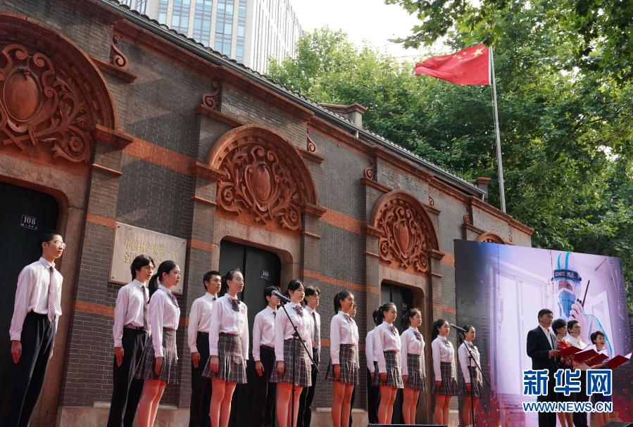 2020年7月1日,“七一”重溫入黨誓詞儀式在中共一大會址前舉行。這是活動現場以詩朗誦形式講述抗疫一線的黨員故事。新華社記者 劉穎 攝