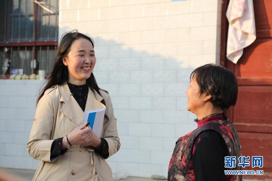 2月23日,在甘肅省隴南市徽縣水陽鎮石灘村,全國人大代表梁倩娟(左)同村民茍明交流?!⌒氯A社記者 張智敏 攝