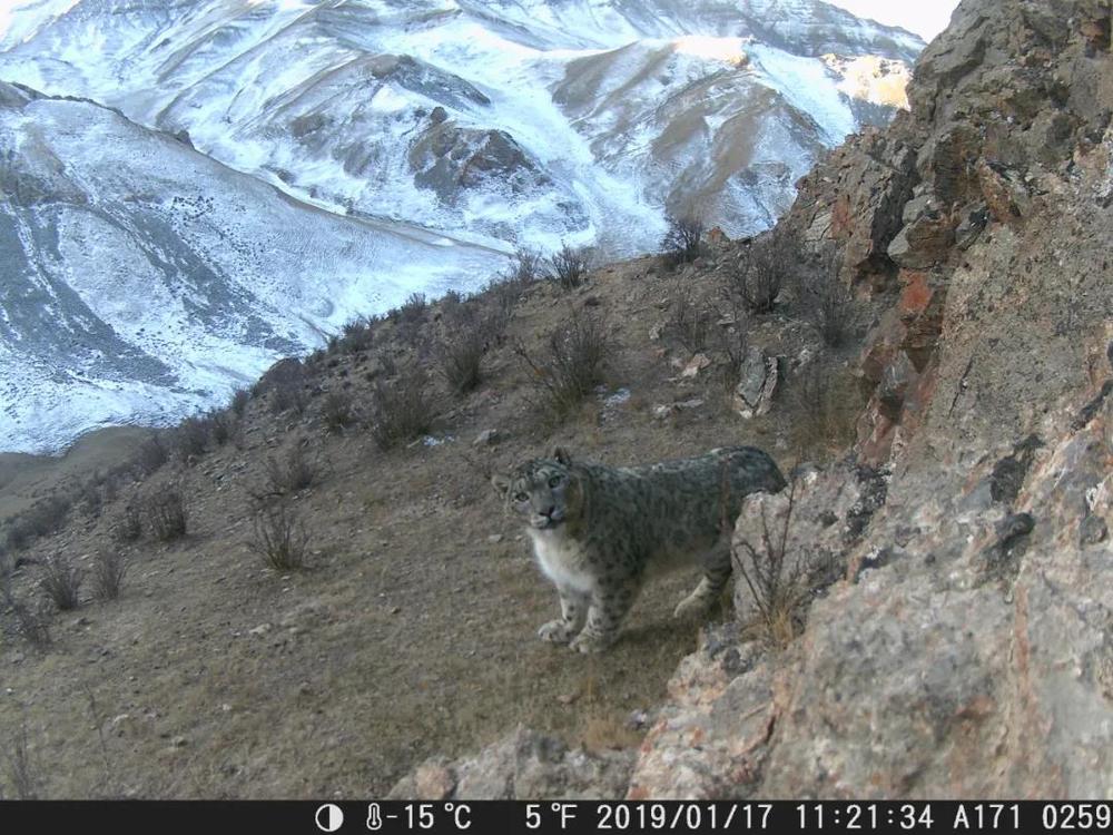 ↑2019年2月20日,在祁連山國家公園青海片區,紅外相機拍攝到的雪豹照片。