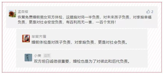 全國人大代表周洪宇建議,由國務院修改《婚姻登記條例》,將國家免費孕前優生健康檢查項目列入婚姻登記前置程序,將婚檢納入公共衛生服務范疇,由政府支付婚檢基本項目費用,由民政部聯合衛健委實施,將婚檢率由目前的61.1%提升至100%,為新婚夫妻建立統一的出生缺陷風險評估、分級、統計、追蹤服務的數據庫。國家財政部在“十四五”期間不妨增加婦幼保健和計劃生育公共服務支出,由國家醫保局指導各地醫保部門結合當地實際,提高醫保對孕產婦報銷普通門診、住院分娩費用額度。