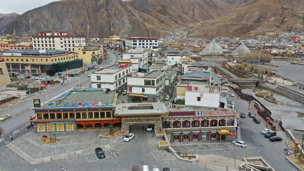 ↑ 圖為2021年3月10日拍攝的玉樹市一處商業區(地震前為結古寺賓館)。
