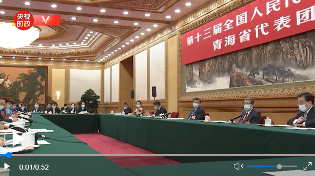 ↑ 3月7日,中共中央總書記、國家主席、中央軍委主席習近平參加十三屆全國人大四次會議青海代表團的審議。新華社記者李學仁攝