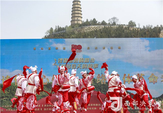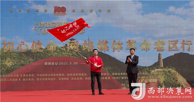 主會場活動結束后,陜西分會場“在這里讀懂初心使命——網絡媒體革命老區行”網絡主題采訪活動在延安寶塔山游客廣場正式啟動。趙剛在分會場啟動儀式上講話并向采訪團授旗。陜西省委網信辦主任鮑永能主持啟動儀式。中央網信辦網絡傳播局副局長邵波濤,陜西省委網信辦副主任王利參加啟動儀式。延安市委副書記、政法委書記嚴漢平在啟動儀式上致辭。媒體團代表中國新聞網負責人吳慶才作表態發言。