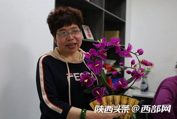 董智玲說:“你看我這盆蝴蝶蘭絲網花是不是很逼真,絲網花質感強,猶如鮮花一般,放在家里欣賞及裝飾效果都很好,它不易褪色,歷久如新,清潔起來也相當方便。”