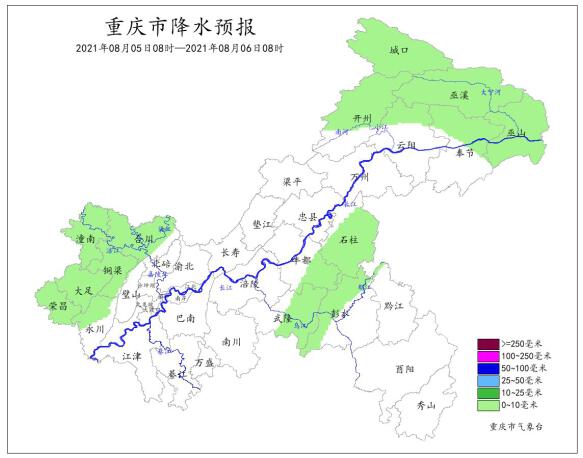 據實況監測顯示,8月2日07時―3日07時,重慶市各地晴到多云,東部局地出現陣雨,奉節、云陽等2個縣的3個雨量站達暴雨,最大雨量62.6毫米(奉節朱衣),最大小時雨量52.4毫米(奉節朱衣,3日01時)。重慶市海拔600米以下地區最高氣溫≥37℃,渝北、北碚、沙坪壩、九龍坡、江北、大渡口、南岸、渝中、高新區、兩江新區、巴南、合川、永川、銅梁、潼南、榮昌、璧山、江津、萬盛、涪陵、豐都、開州、巫溪、萬州、云陽、忠縣、城口、奉節、巫山、武隆、彭水、黔江、秀山等33個區縣部分地區最高氣溫超過40℃。