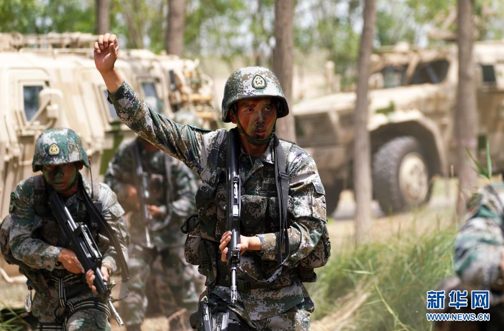 陸軍第76集團軍某特戰旅特戰營營長劉近帶領特戰小隊進行突擊清剿行動(7月14日攝)。新華社記者張永進攝