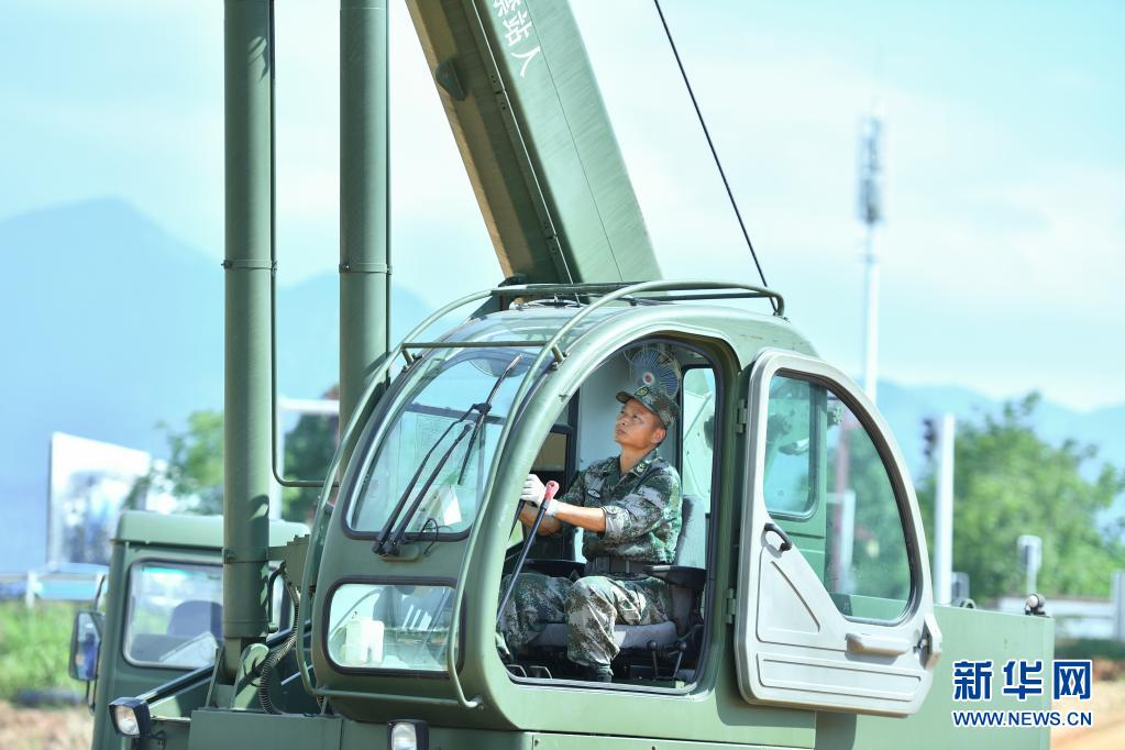 戰(zhàn)略支援部隊某大隊一級軍士長高玉華操作工程機械(7月23日攝)。 新華社記者 陳澤國 攝