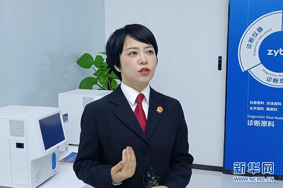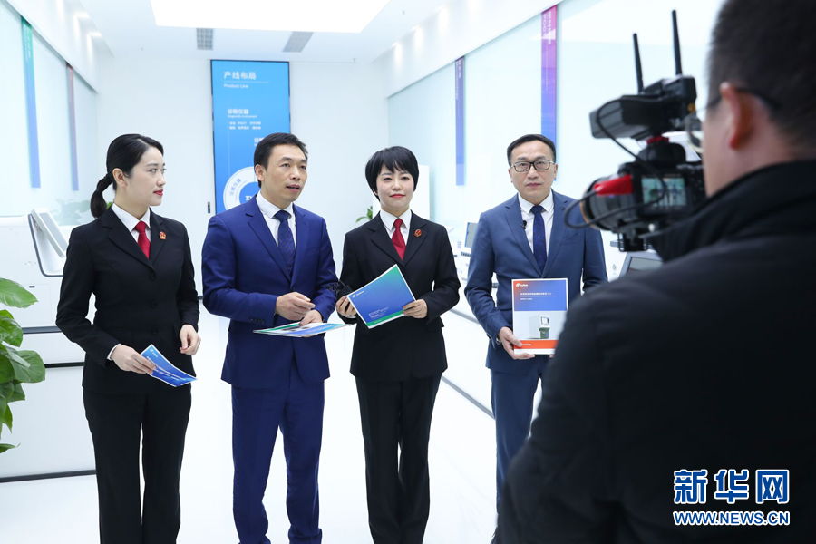 圖為直播中,企業技術負責人介紹企業的相關產品以及知識產權保護相關情況。新華網發(吳川嬌 攝)