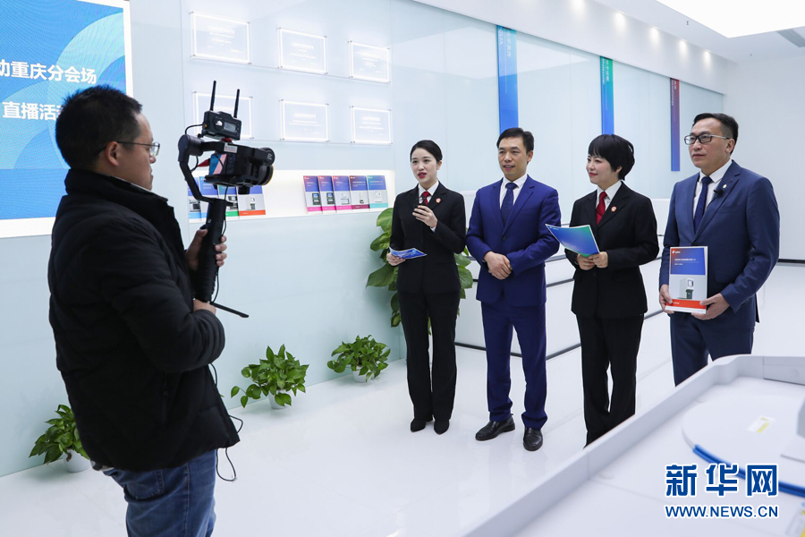 重慶知識產權法庭副庭長譚穎在直播中向網友普及知識產權保護的相關法律知識。新華網發(吳川嬌 攝)