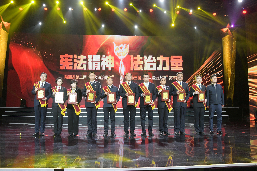12月2日,陜西省第二屆“十大法治事件”暨第三屆“十大法治人物”發布儀式在西安舉行。省委常委、省委政法委書記莊長興,省人大常委會副主任、省總工會主席郭大為,副省長徐大彤,省政協副主席李曉東出席并為獲獎代表頒獎。
