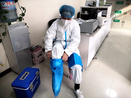 今年11月1日,咸陽市城投醫療集團二棉醫院的王敏娟也接到了為居家隔離者上門進行核酸采樣的任務。當天早上8點出發,一直工作到中午一點半,就在剩下兩三戶的時候,她感覺到不舒服,頭暈難受,當時想著再堅持一會兒,等完成所有任務再吃飯休息。另外,也實在舍不得再浪費一套防護服。