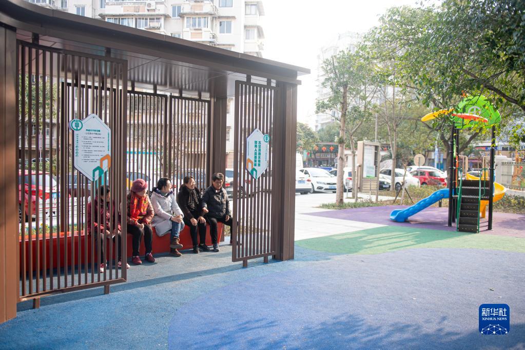 1月18日,江北區桃源小區的居民在小區里聊天。新華社記者 江漢 攝