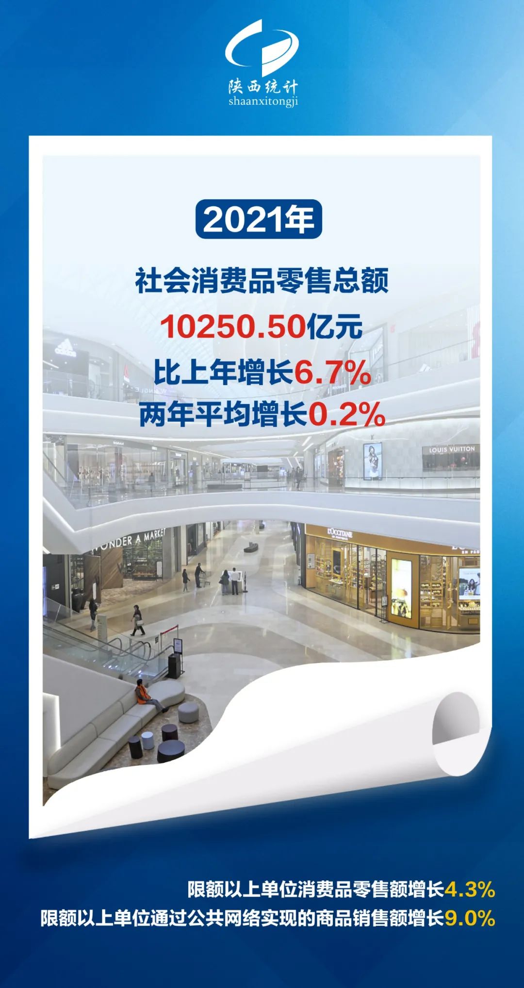 2021年,全省實現(xiàn)社會消費品零售總額10250.50億元,比上年增長6.7%,兩年平均增長0.2%。其中,限額以上單位消費品零售額4984.18億元,增長4.3%,兩年平均下降0.5%。