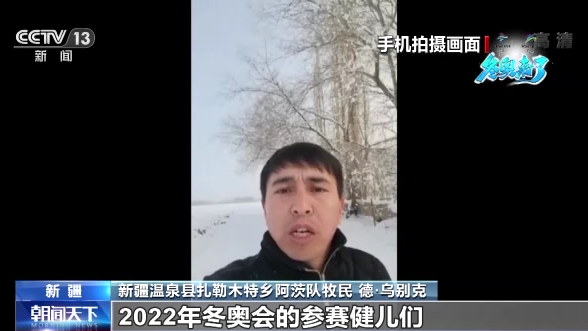 新疆溫泉縣扎勒木特鄉阿茨隊牧民 德·烏別克:即將在首都北京舉辦的2022年冬奧會的參賽健兒們,在我們家鄉進行了為期一個半月的訓練,在這么冷的天氣中,他們堅持訓練真的很辛苦,奧運健兒們啟程參加冬奧會之日,我們騎著駿馬揮舞著國旗,以不舍的心情為他們送行,祝他們取得好的成績。