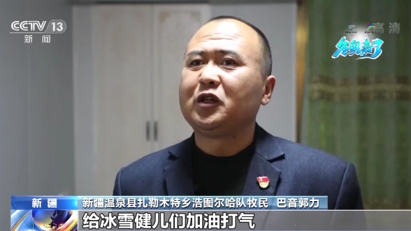 新疆溫泉縣扎勒木特鄉浩圖爾哈隊牧民 巴音郭力:我們特別激動,就想用跑馬送行的形式給冰雪健兒們加油打氣,希望他們能為國爭光,能把我們的心情帶到奧運賽場上。