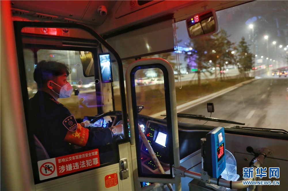 1月25日,西安市公共交通165路汽車司機駕駛公交車在北辰大道上行駛。新華網 王智超攝