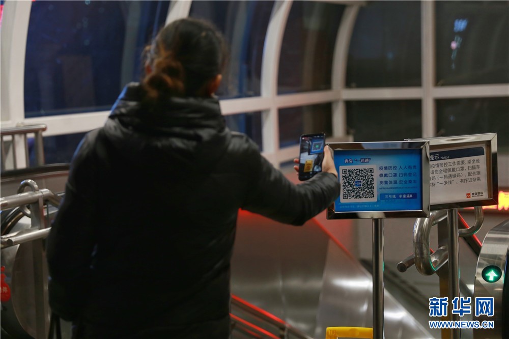 1月25日,西安地鐵三號線辛家廟站B口,市民在進行掃碼登記。新華網 王智超 攝