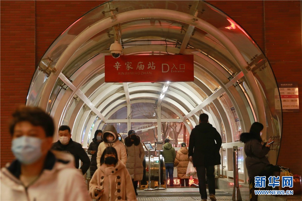 1月25日,西安地鐵三號線辛家廟站D口來往的進出站乘客。新華網 王智超 攝