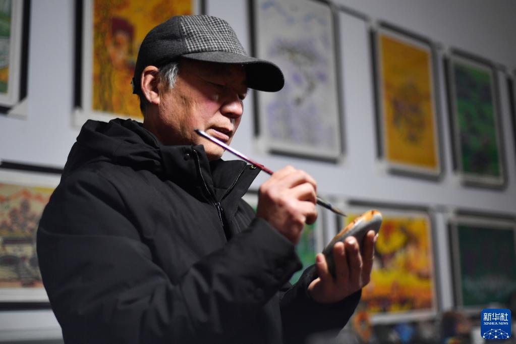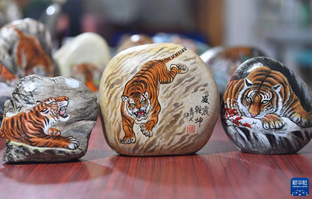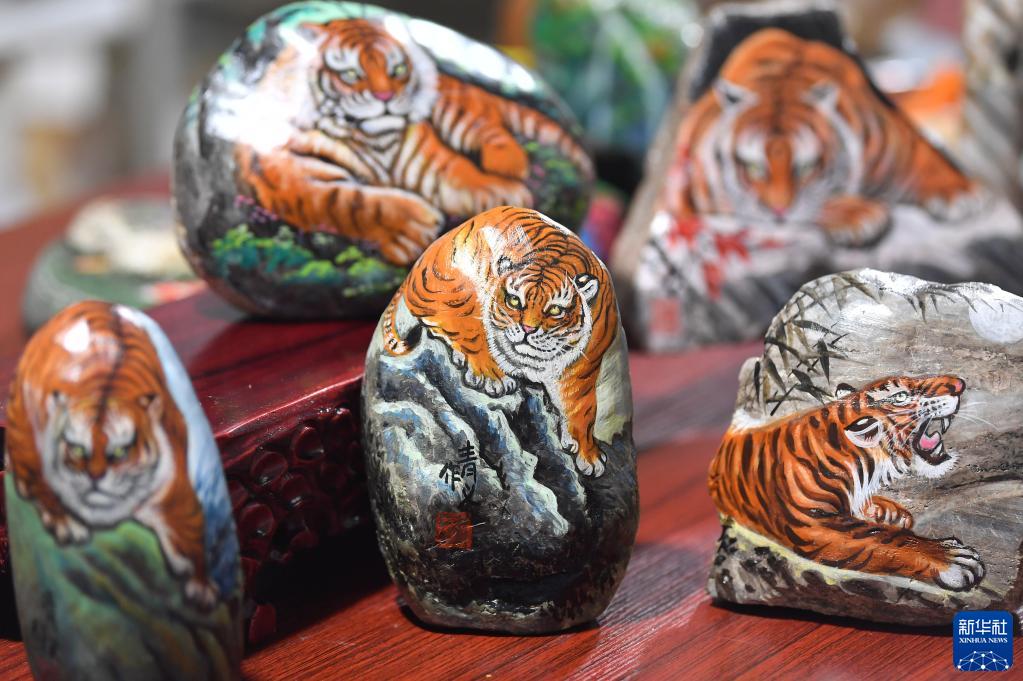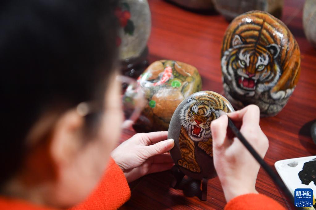農歷虎年將至,陜西省西安市鄠邑區的農民畫家以石材為畫布,創作虎主題作品迎接新春佳節。